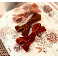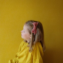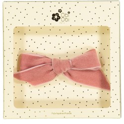 Softness with the large bow hair clip in Quartz pink . Made with a beautiful Japanese velvet fabric for a romantic and elegant touch on the hairstyles of big ones and little ones.