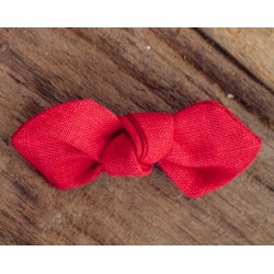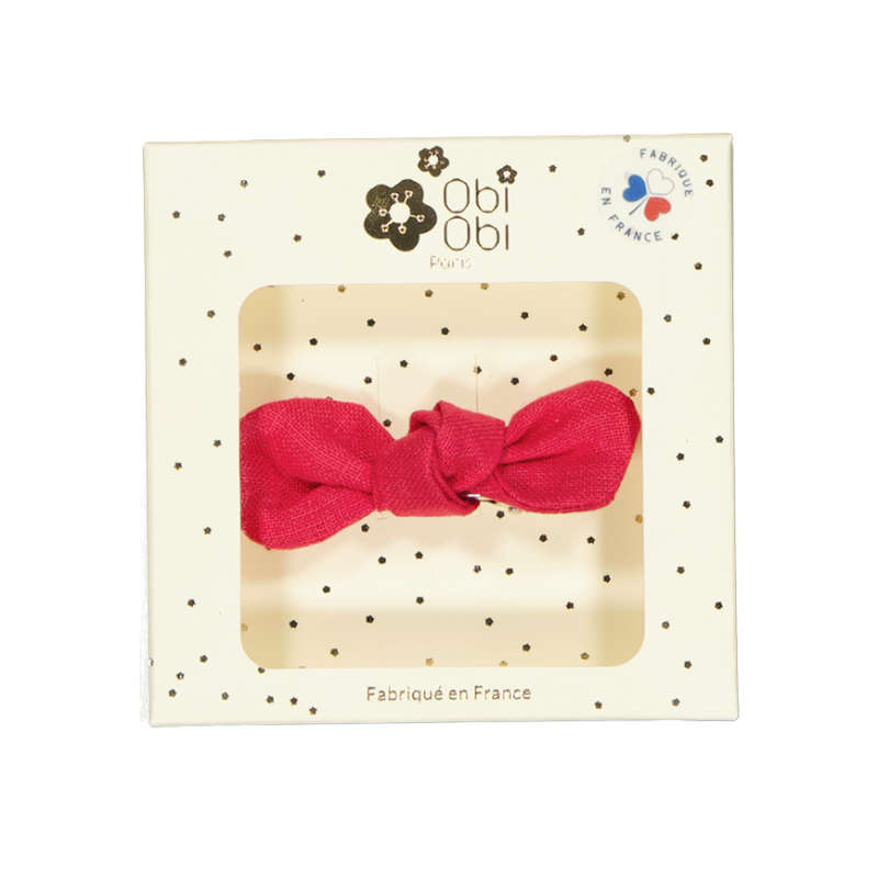Jolie barrette noeud en lin fushia Entierement conçue et cousue en France- Modèle déposé à l’INPI Packaging : boite cadeau dorée à l'or chaud (dimension : 9 X 9 X 1,5cm).