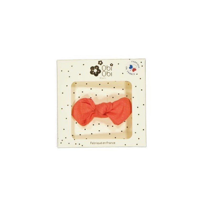 Jolie barrette noeud en lin Abricot