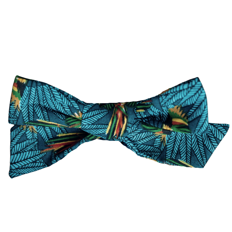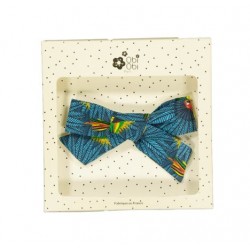 Jolie barrette RETRO en coton motif "Perroquet" Entierement conçue et cousue en France- Modèle déposé à l’INPI Packaging : boite cadeau dore à l'or chaud (dimension : 15 X 15 X 2cm). Fabrication française.