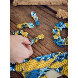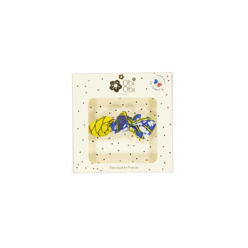 Jolie barrette noeud en wax Entierement conçue et cousue en France- Modèle déposé à l’INPI Packaging : boite cadeau dorée à l'or chaud (dimension : 9 X 9 X 1,5cm).