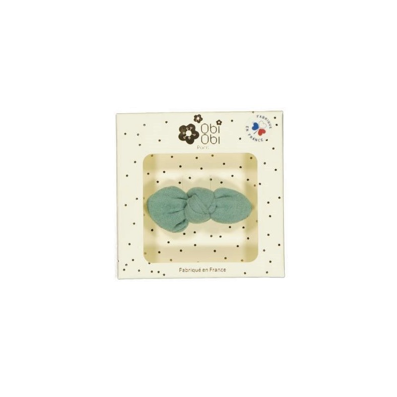 Jolie barrette noeud Vert d'eau - en double gaze de coton