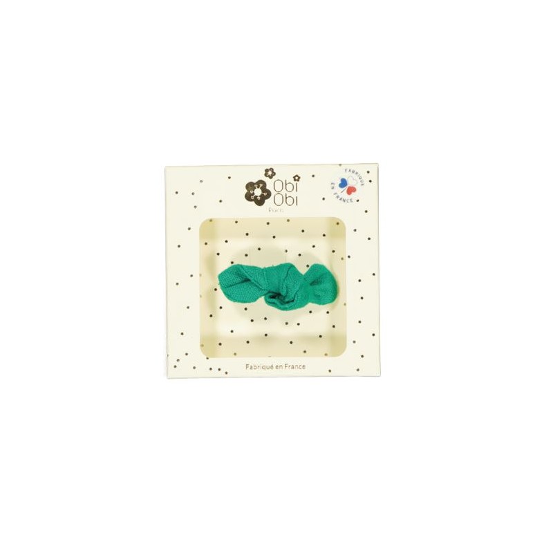 Jolie barrette nœud en lin émeraude, portée sur une pince crocodile, celle-ci permet une tenue longue durée sur tous les types de cheveux !