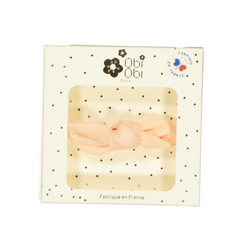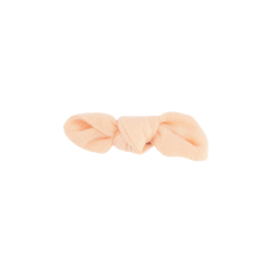 Barrette Nœud couleur pêche. La pince crocodile mesure 4,5cm et est garantie sans nickel.