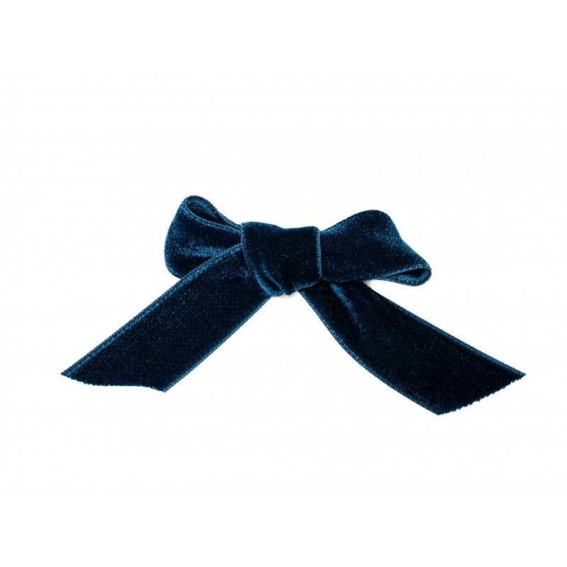 Douceur avec la grande barrette nœud bleu saphir. Dans une belle matière en velours japonais pour une touche romantique et élégante sur les coiffures des grandes comme des petites.