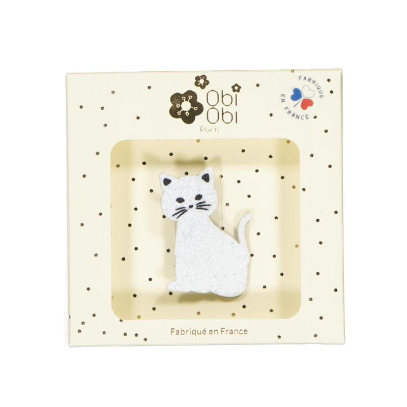 Rigolote cette petite broche blanche pailletée en forme de chaton-