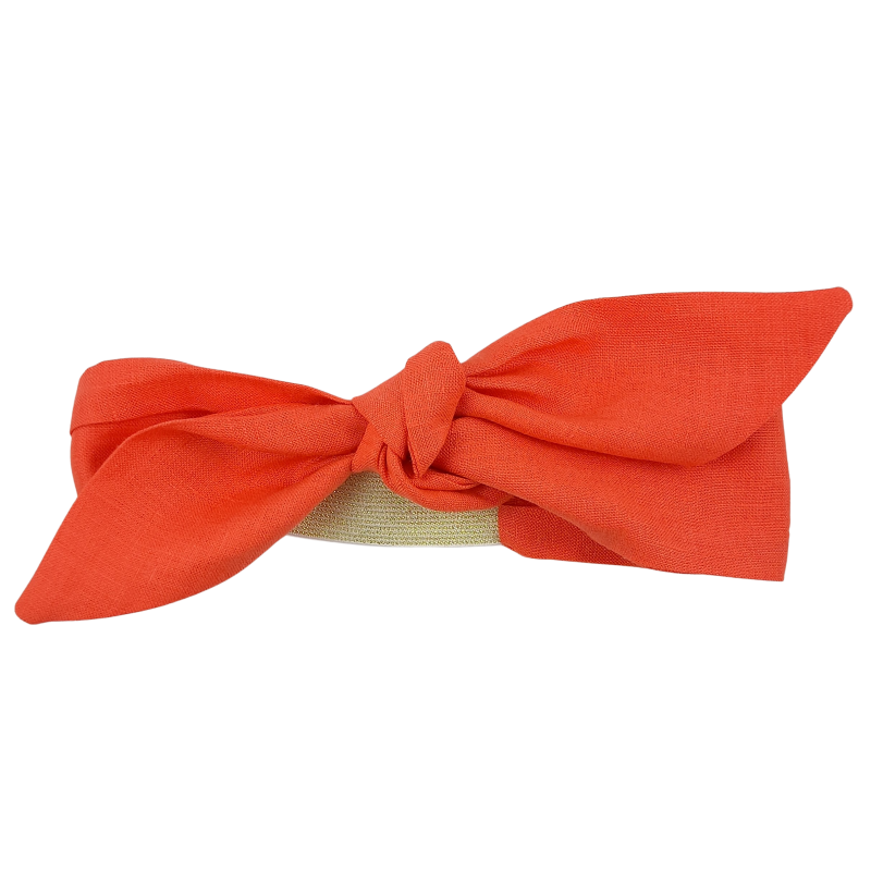 Joli bandeau en Lin Abricot Packaging : boite cadeau dore à l'or chaud (dimension : 15 X 15 X 2cm). Fabrication française.