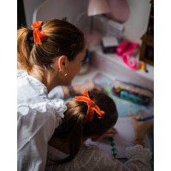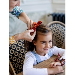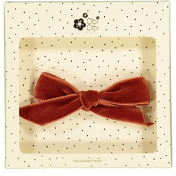 Douceur avec la grande barrette nœud rouge Terracotta. Dans une belle matière en velours japonais pour une touche romantique et élégante sur les coiffures des grandes comme des petites.